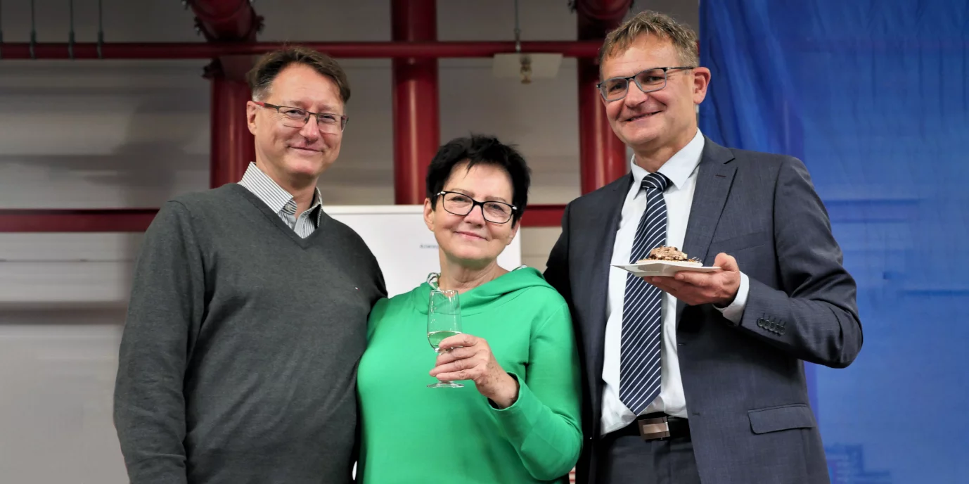 Na zdjęciu z jubileuszowego spotkania z załogą: troje Pionierów, którzy od początku współtworzyli naszą firmę: